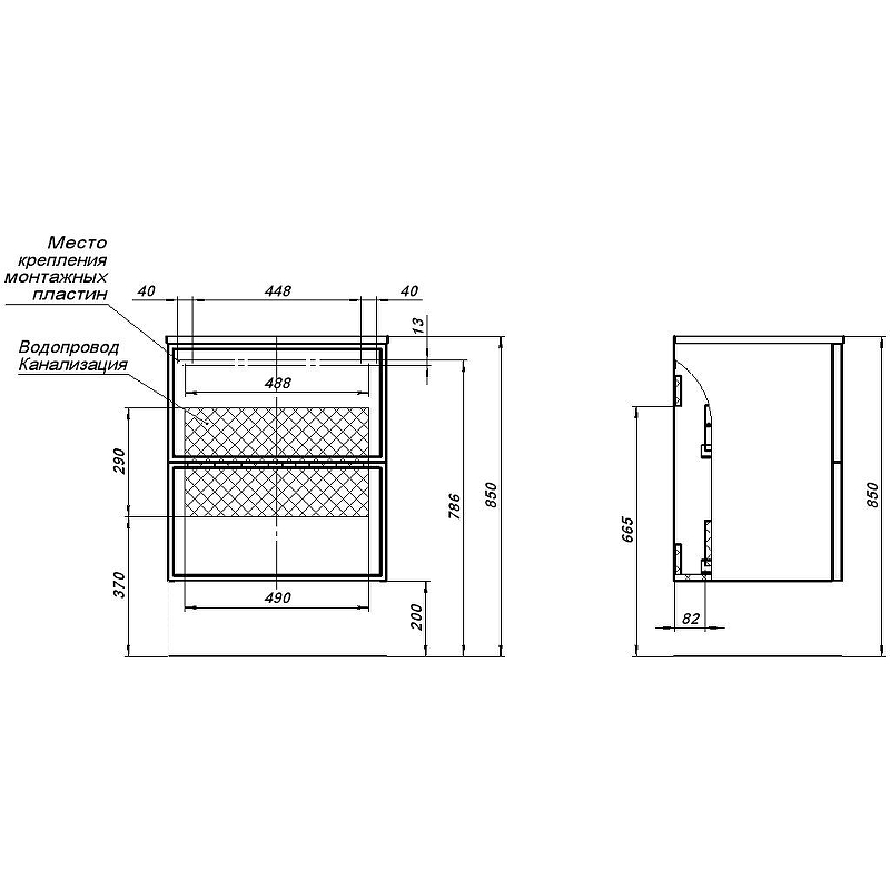- Габариты корпуса тумбы (ШxВxГ): 580х632х445 мм.