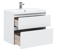 Мебель для ванной Aquanet Гласс 100 белого цвета состоит из тумбы "Гласс" шириной 100 см с раковиной "Орлеан" и зеркала "Латина" шириной 100 см. Тумба смотрится эффектно благодаря сочетанию белого матового стекла на фасаде верхнего выдвижного ящика с белоснежными глянцевыми поверхностями корпуса, выполненного из МДФ. Такое покрытие, к тому же, надежно защищает мебель от воздействия воды. «Изюминку» во внешний вид вносит внутренняя часть выдвижных ящиков, выполненная в цвете «дуб сонома». Древесная фактура вносит свежесть и живописность в дизайн всего изделия. Производители позаботились о деталях. Ящики лишены выступающих деталей, ручки интегрированы в фасад. Тумбу можно из подвесного элемента преобразовать в напольный, просто докупив универсальные ножки. Раковина из литьевого мрамора «Орлеан» относится к числу накладных моделей и внешне выглядит как единое целое с тумбой. Ящики тумб оснащены направляющими Hettich Quadro c плавным закрыванием, более известным нам как доводчик.
