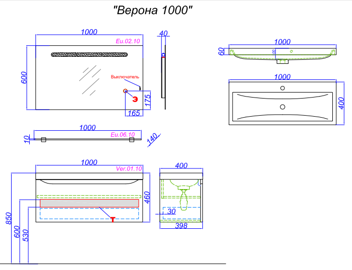 - Данная серия комплектуется зеркалами Европа. В зеркальную панель встроена люминесцентная подсветка с эффектом фонового освещения. При изготовлении зеркал используется влагостойкое полотно.
