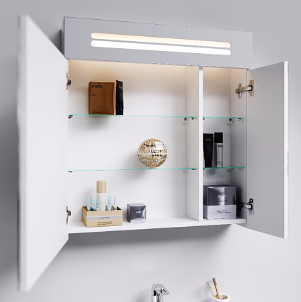- Особенностью зеркальных шкафов коллекции является внешняя фоновая подсветка, которая освещает и внутреннее пространство. Данные зеркальные шкафы также оборудованы розеткой и выключателем.