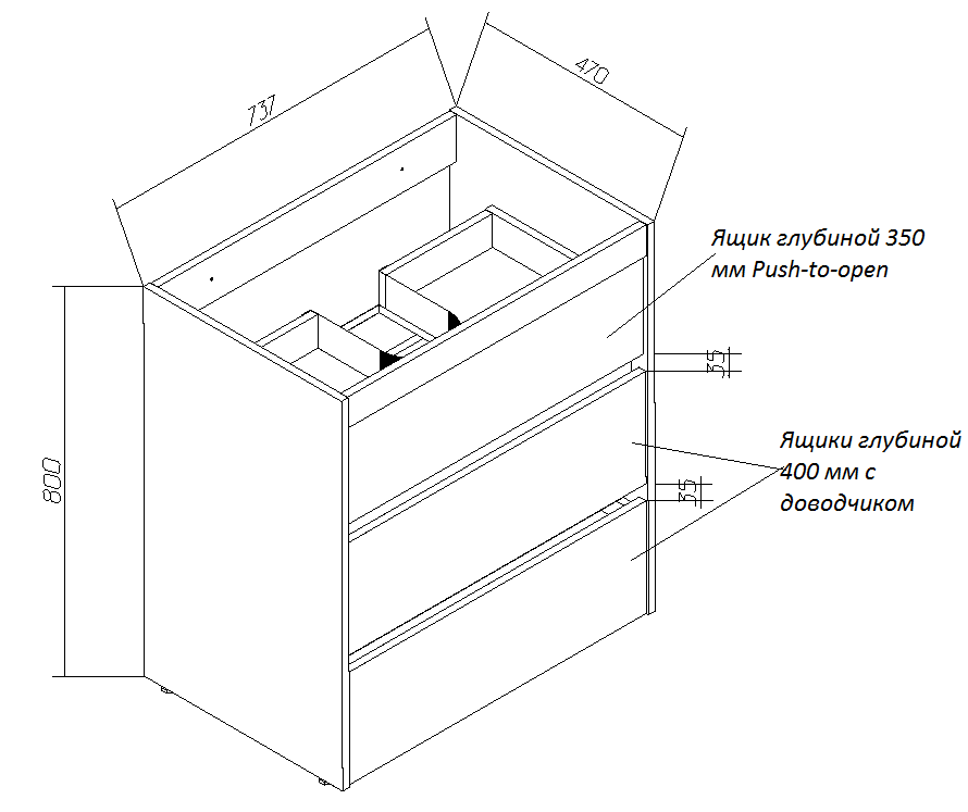 - база оснащена доводчиками скрытого монтажа с системой Soft close (плавного закрывания)