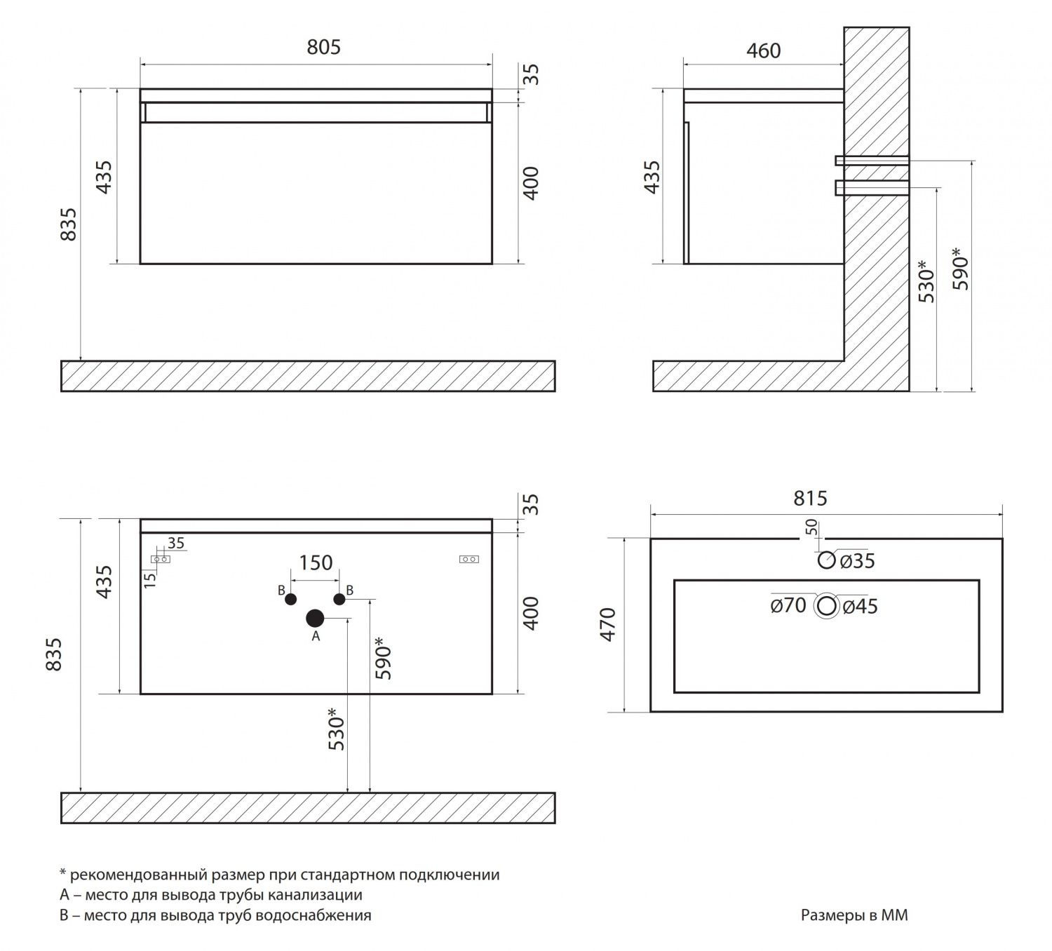 Размеры тумбы с раковиной