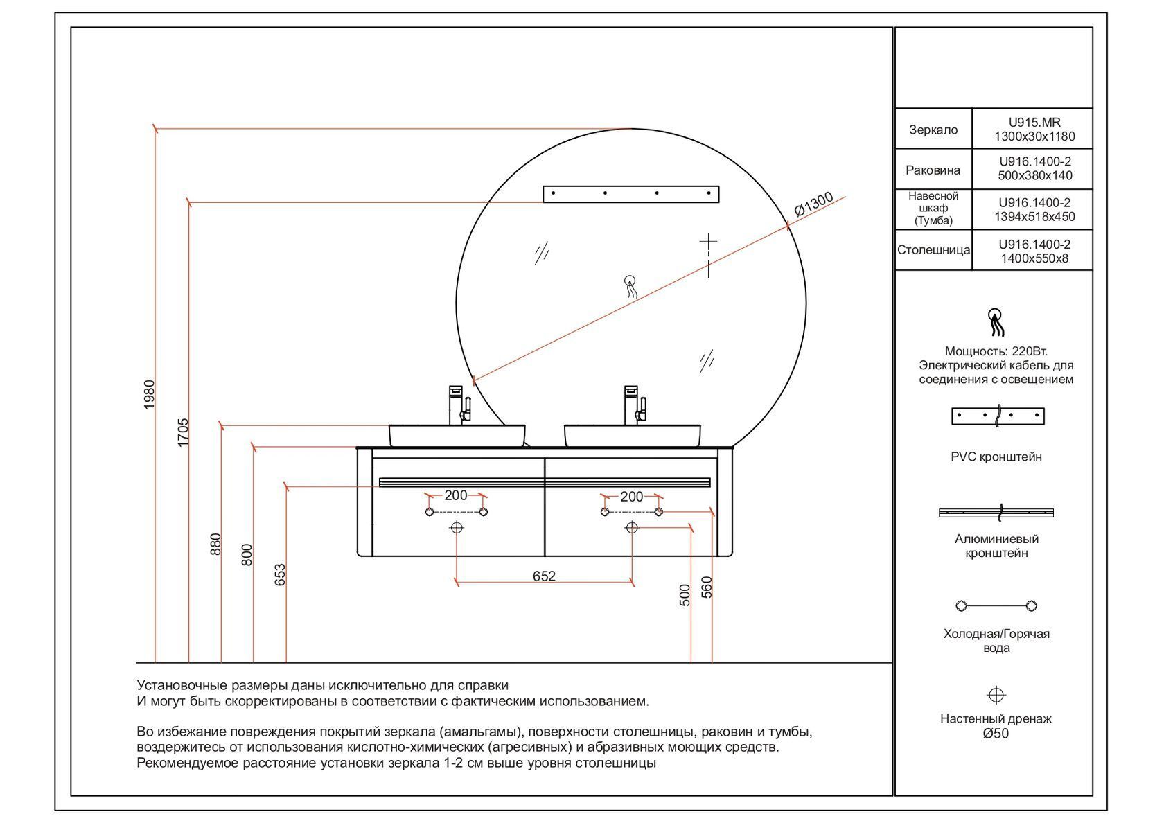 Мебель для ванной Black&White Universe U916.1400-2 Double 140 см, бежевый, две раковины