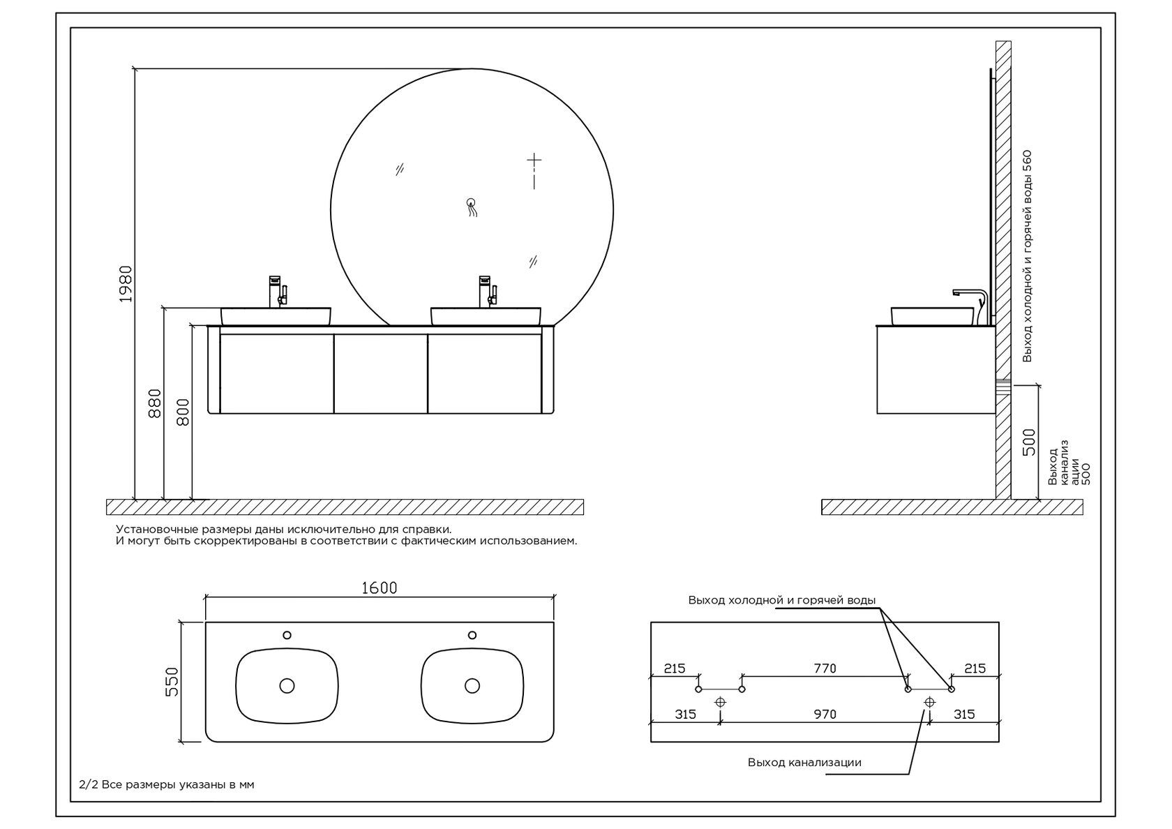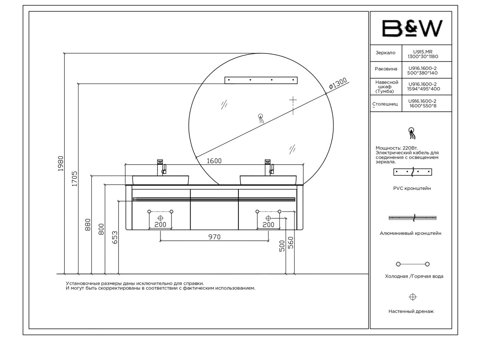 Мебель для ванной Black&White Universe U916.1600-2 Double 160 см, бежевый, две раковины