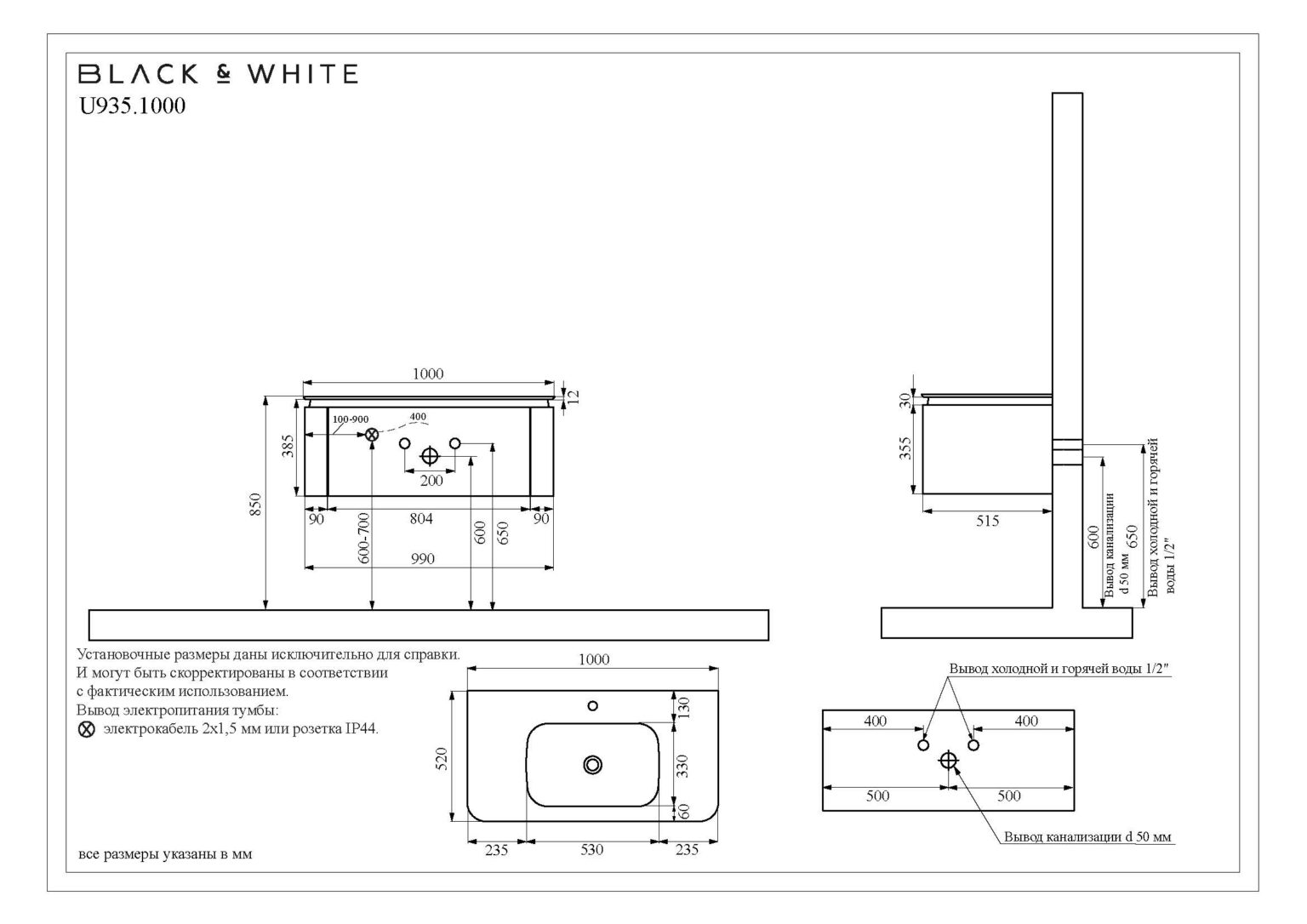 Мебель для ванной Black&White Universe U935 100 см матовый серебристый серый