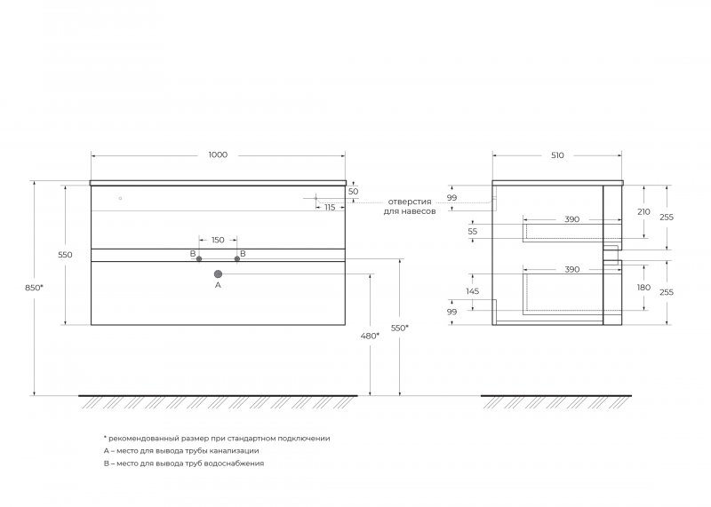 - Система хранения: 2 выдвижных ящика