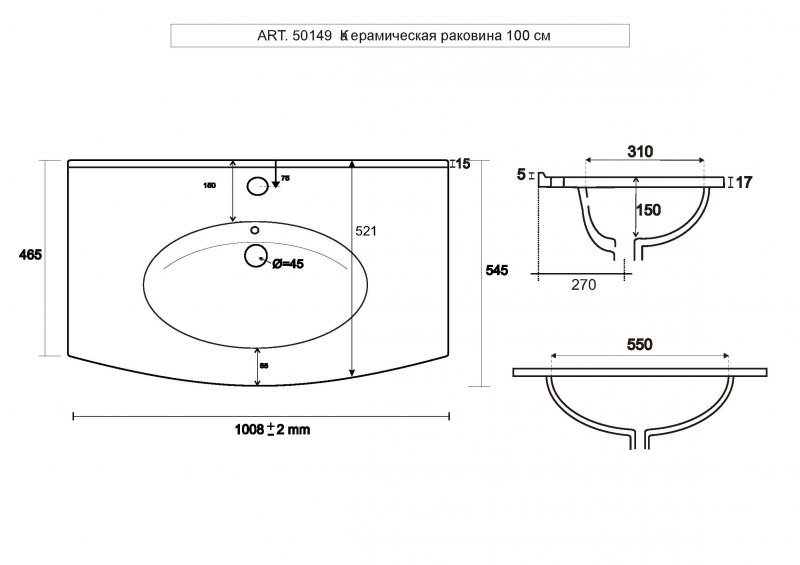 - Цвет раковины: белый