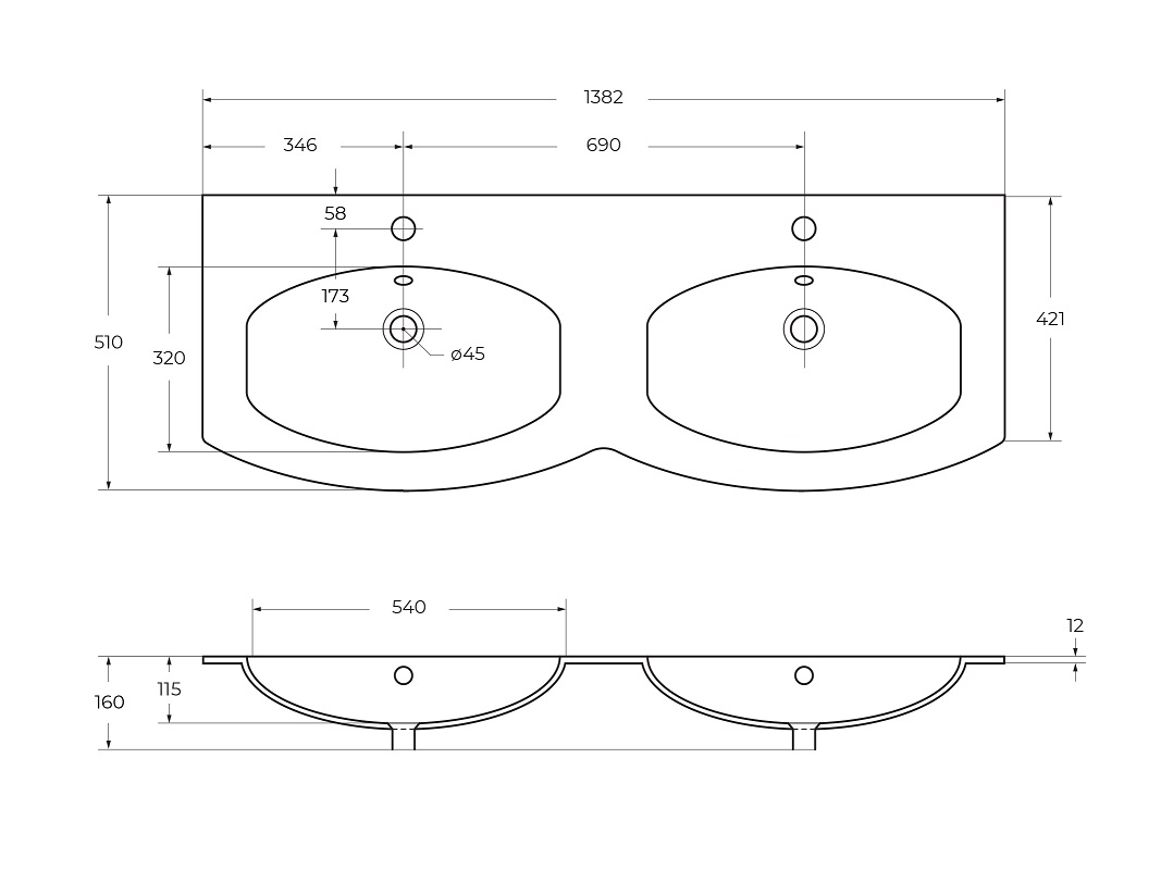 - Материал раковины: искусственный мрамор, с 2 чашами