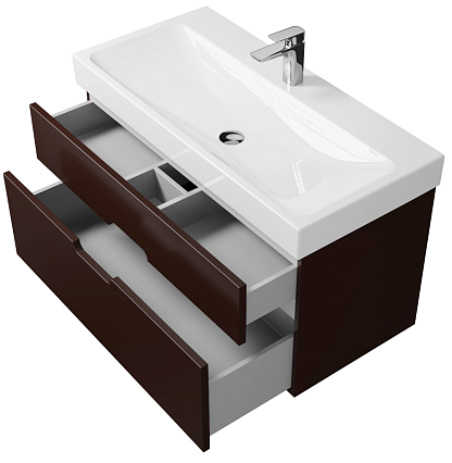 Решение для ванной комнаты на любой вкус! Шоколад и капучино в чистом виде или разбавленные матовой белой эмалью - вы можете выбрать любой вариант оформления. Приятная палитра оттенков и возможность комбинировать цвета элементов фасада - то, что делает тумбу Malibu по-настоящему уникальной.