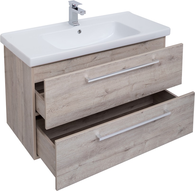 Мебель для ванной Dreja.eco Gio 100 см в цвете дуб кантри- подвесная современная коллекция, состоящая из тумбы с 2-мя выдвижными ящиками с доводчиками Hettich. Комплектуется ножками ( 2 хромированные, 2 белые + крепления). Можно дополнить разнообразными шкафами, зеркалом или зеркальным шкафом