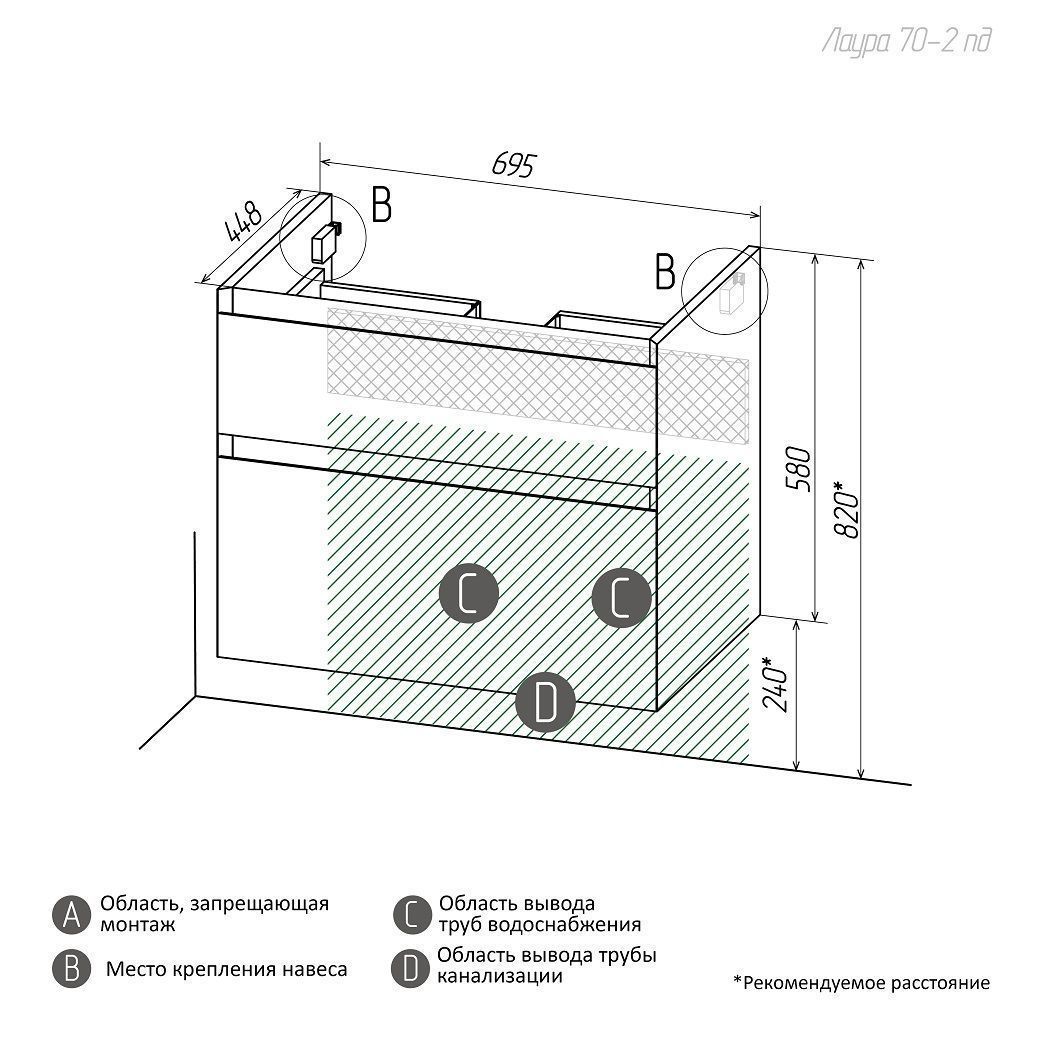 - Подвесная тумба для ванной «МЕРКАДО-70 см», белая матовая – современное и практичное решение для интерьеров в скандинавском и современном стиле.