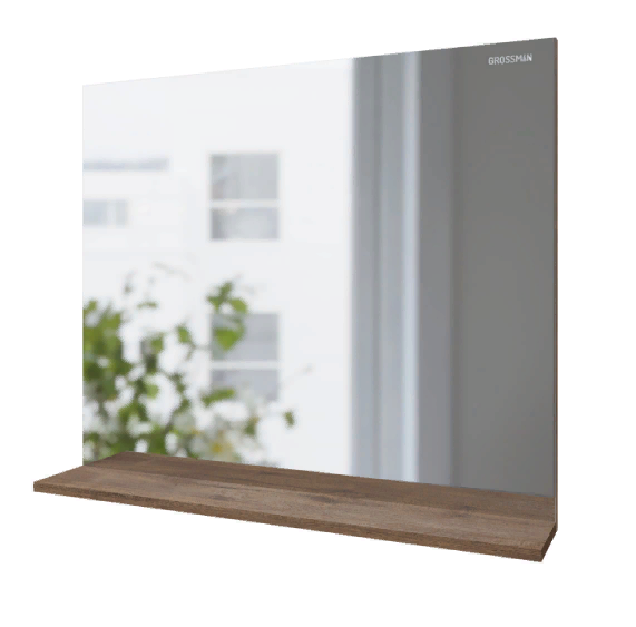- Зеркало Grossman "ТЕНЗА-85 см" с полкой - роскошная текстура и темный цвет дерева, а открытая полка добавляет современный дизайн и строгий стиль с дополнительным местом для аксессуаров