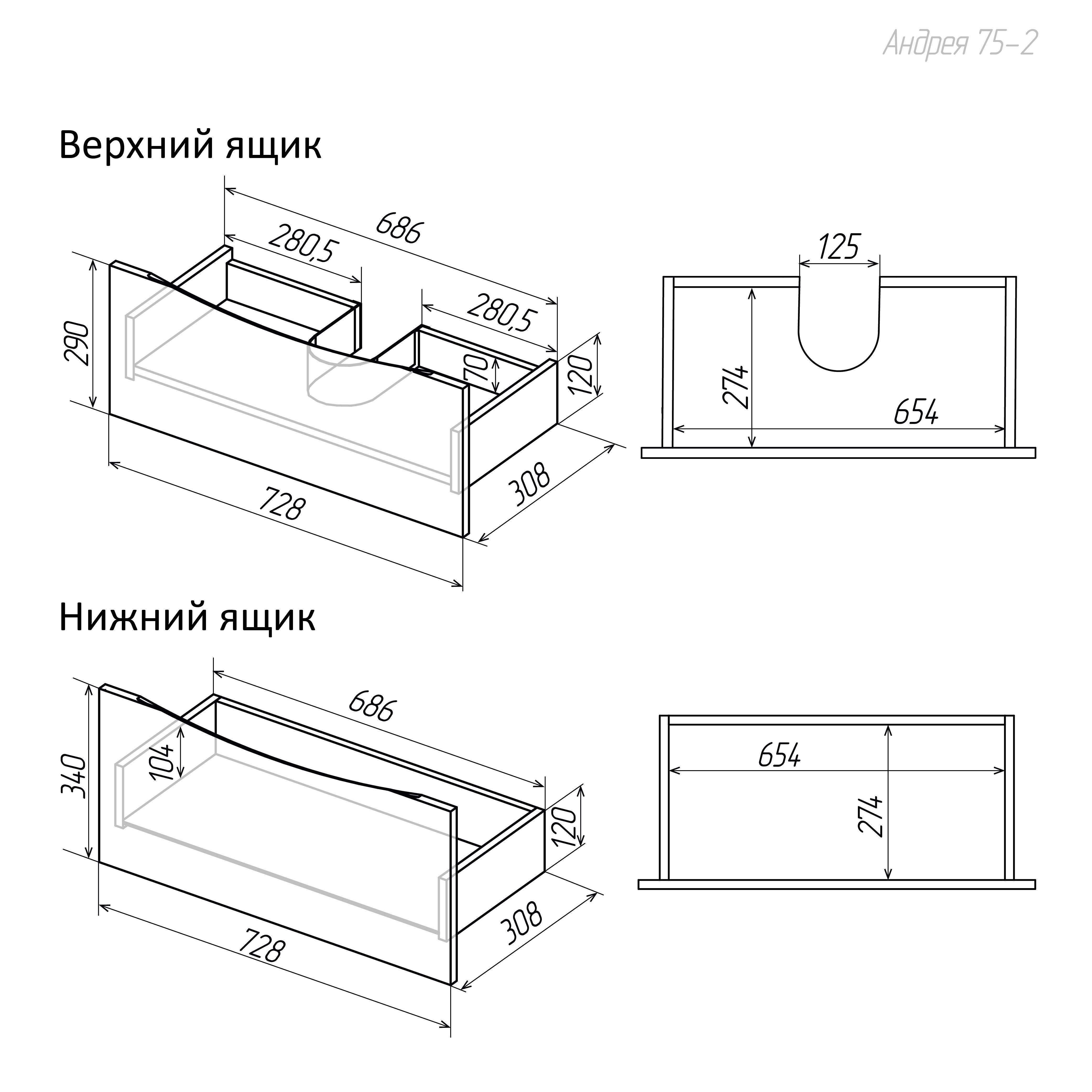 - Два вместительных ящика оснащены скрытыми направляющими с доводчиком и удобными интегрированными ручками с плавными линиями.