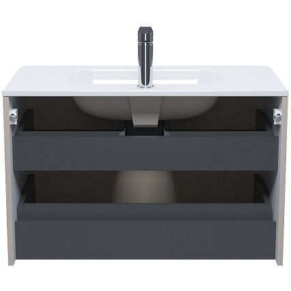 Два выдвижных ящика закрываются плавно и бесшумно благодаря высококачественным скрытым направляющим с доводчиками немецкого производства. Надежные крепления рассчитаны на большой вес и позволяют равномерно распределять нагрузку.
