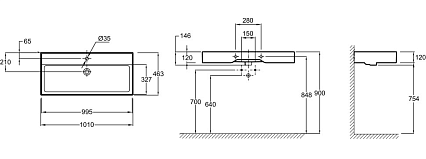 - Раковина керамическая со столешницей слева, 1 отверстие для смесителя