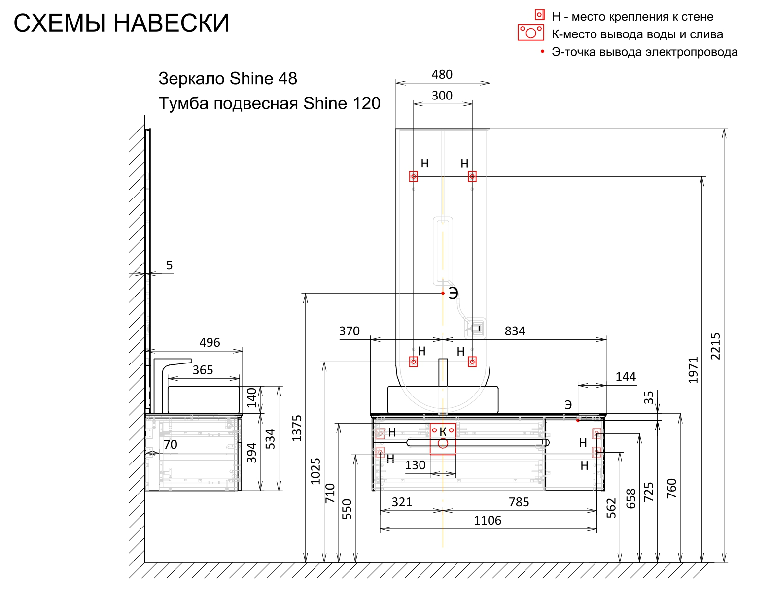 Тумба под раковину Jorno Shine 120 см с МФУ,