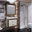 Фасады изготавливаются из высококачественного МДФ с глянцевым покрытием — бежевый оттенок для обрамления с золотой патиной, белый оттенок для обрамления с серебристой патиной. Обрамления для ящиков и зеркала выполнены из натурального массива бука в сочетании с золотой и серебряной патиной.