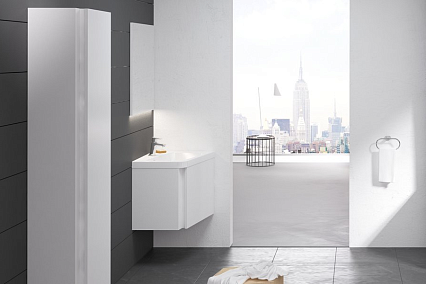 Стиль, дополняющий необычные формы углового умывальника 10°, легкий поворот которого обеспечивает намного больше пространства в углу ванной комнаты. Шкафчик предлагает объемное внутреннее пространство и практичный ящик для хранения мелких вещей. Три вида декора (белый глянец, серый глянец и темно-ореховый) позволяют преобразить ванную комнату и подарить ей желаемый образ.