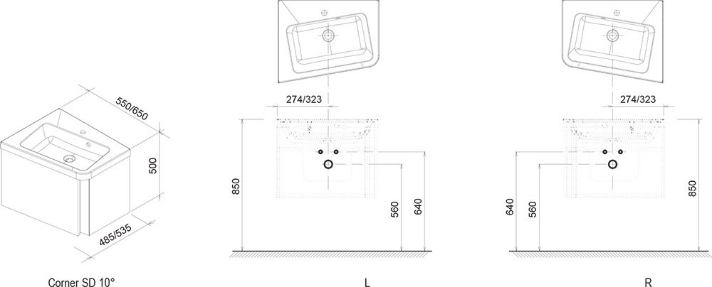 Стиль, дополняющий необычные формы углового умывальника 10°, легкий поворот которого обеспечивает намного больше пространства в углу ванной комнаты. Шкафчик предлагает объемное внутреннее пространство и практичный ящик для хранения мелких вещей. Три вида декора (белый глянец, серый глянец и темно-ореховый) позволяют преобразить ванную комнату и подарить ей желаемый образ.