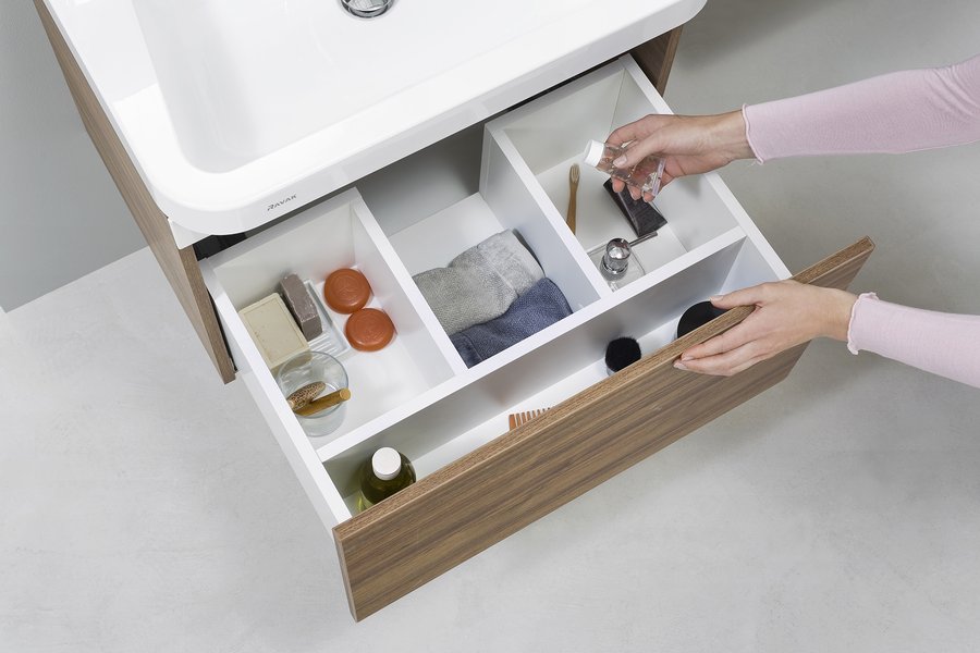 Дизайн, идущий Вам навстречу. Воспользуйтесь двумя вариантами ширины и дизайна, дополняющего формы умывальника 10°. Шкафчик предлагает объемное внутреннее пространство и практичный ящик для хранения мелких вещей. Три вида декора (белый глянец, серый глянец и темно-ореховый) позволяют преобразить ванную комнату и подарить ей желаемый образ.