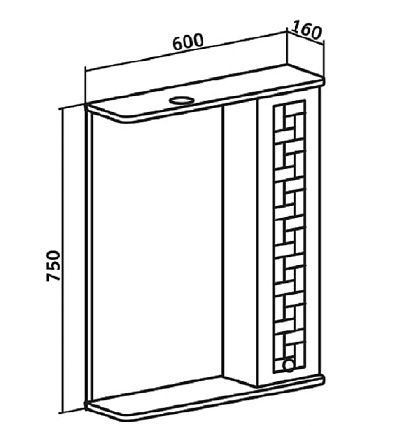 - Зеркальный шкаф оборудован одним врезным светодиодным светильником 220В и розеткой с выключателем