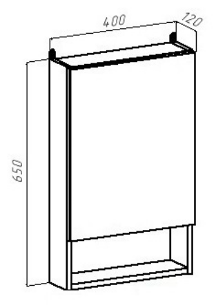 - Шкафчик в ванную оснащён одной распашной дверцей с зеркальным фасадом и открытой нижней полкой