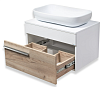 Тумба подвесная под умывальник с выдвижным ящиком. Благодаря универсальному отверстию на столешнице тумба может комплектоваться различными вариантами накладных раковин: модель «Caspia» 60 TM Cersanit с вместительной чашей овальной или квадратной формы или раковина «Гамма» 56 ТМ Kirovit c глубокой чашей и высокими бортиками, которые отражают современные тренды в дизайне. Ящик на шариковых направляющих с системой плавного закрывания, ручка -1шт, навесы - 2шт
