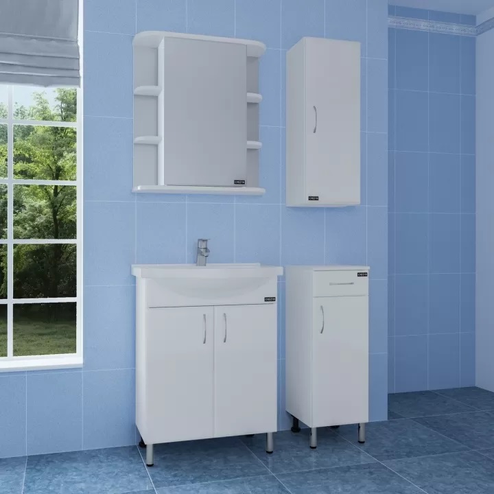 Мебель для ванной комнаты коллекции "Стандарт" выполнена в строгом стиле. Четкость линий, сдержанность в деталях. Комплект "Стандарт" цвета белый глянец состоит из тумбы, зеркала, шкафа-колонны. Корпус изделий выполнен из влагостойкого ЛДСП, фасад из МДФ. Фасад мебели покрыты глянцевой ПВХ плёнкой. Тумба укомплектована красивой классической раковиной из санфаянса.