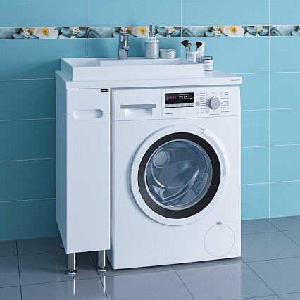 Тумба под умывальник над стиральной машиной напольная "Лондон 19" (ум.Юпитер 80*50 литой мрамор). Тумбу можно устанавливать как под левую раковину Юпитер 80/50, так и под правую. Петли у тумбы расположены с правой стороны.