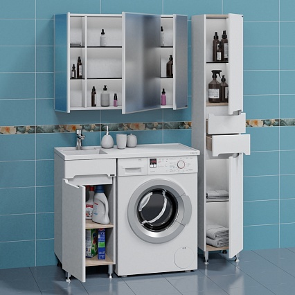 Тумба под умывальник над стиральной машиной напольная "Лондон 39" 1 дв.(ум.Лидер 1000 литой мрамор). Тумбу можно устанавливать как под левую раковину Лидер 100/50, так и под правую.