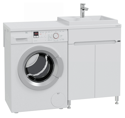 Тумба под умывальник над стиральной машиной напольная "Лондон 59" (ум.Юпитер 120*50). Тумбу можно устанавливать как под левую раковину Юпитер 120/50, так и под правую.