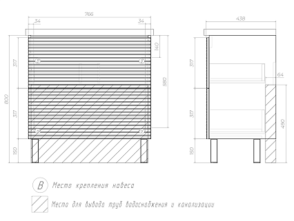 - Оснащение: 2 дверцы; 3 ящика; 1 полка ЛДСП; ручка металлическая хромированная; опоры квадратные регулируемые