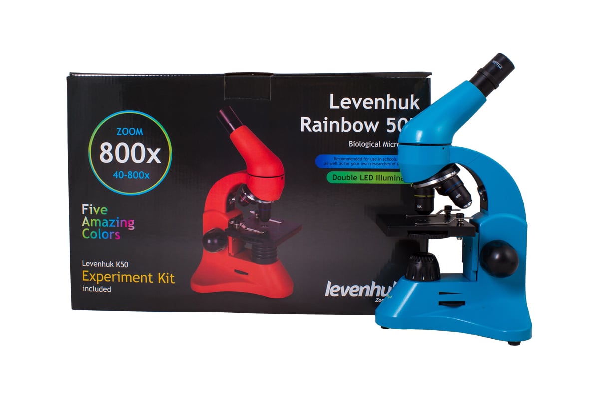 Микроскоп Levenhuk Rainbow 50L Azure\Лазурь 69048 идеален как для дошкольника в качестве первого микроскопа, так и для школьника, который уже начал изучать биологию.