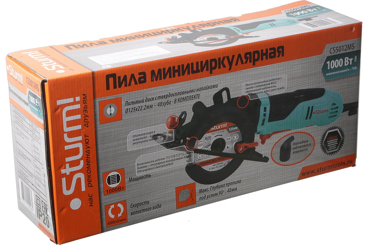 Минициркулярная пила Sturm CS5012MS предназначена для резки заготовок из дерева и пластмассы.