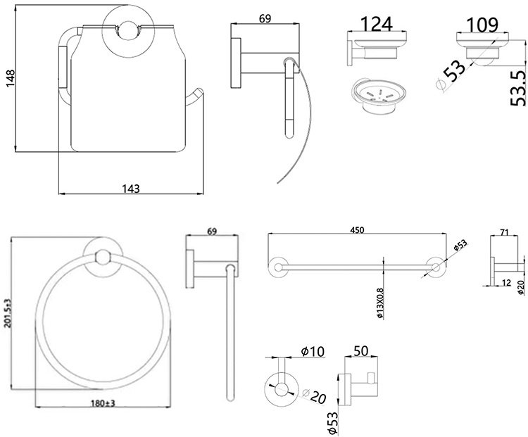 Набор аксессуаров для ванной комнаты AQUAme Trento AQM7221CR