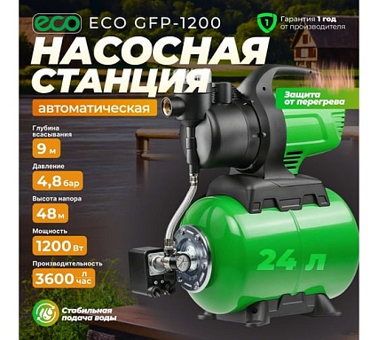 Насосная станция ECO GFP-1200 - компактная и надежная система для водоснабжения загородных домов, коттеджей, участков.