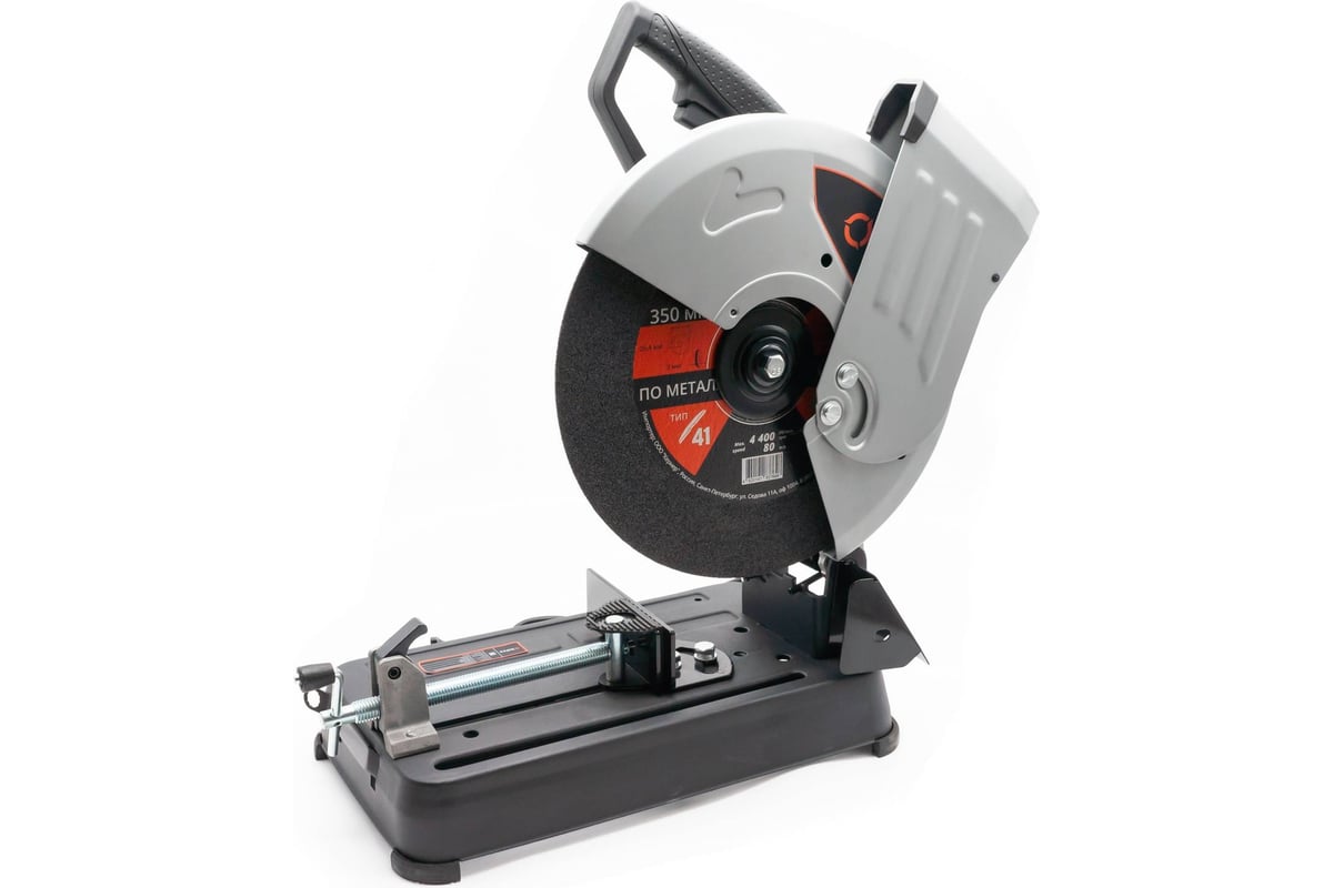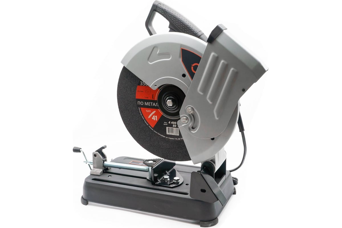 Отрезная пила по металлу с мощным двигателем. Инструмент оснащен направляющими пластинами для максимально точного пропила. Безопасность обеспечивается защитным кожухом.