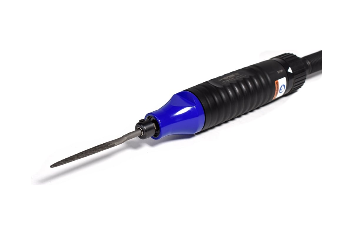 Пневматический напильник DEPRAG FS905-630BY 6061238A работает за счет возвратно поступательных движений, подходит для снятия заусенцев, опиливания, тонкого шлифования и притирки.