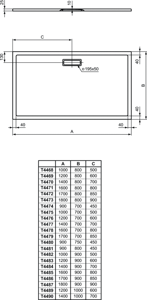 - Сифон с декоративной прямоугольной хромированной крышкой (T4493AA) заказывается дополнительно.