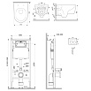 - Инсталляция: монтажная рама; арматура; бачок с системой смыва; монтажная коробка; крепежные шпильки; крепление для унитаза; система смыва; элементы крепления к стене; патрубки для подключения к унитазу; звукоизолирующая прокладка (шумоизоляция).