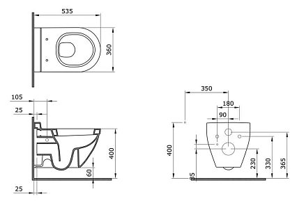 Полностью безободковая чаша без скрытых, труднодоступных мест, где могут скапливаться грязь, микробы и отложения. Круговой смыв - современный воронкообразный вид смыва, который позволяет обработать до 95% поверхности чаши унитаза. Такой смыв имеет массу преимуществ: экономичный расход воды, быстрая уборка, качественный смыв, отсутствие брызг, тихий смыв.