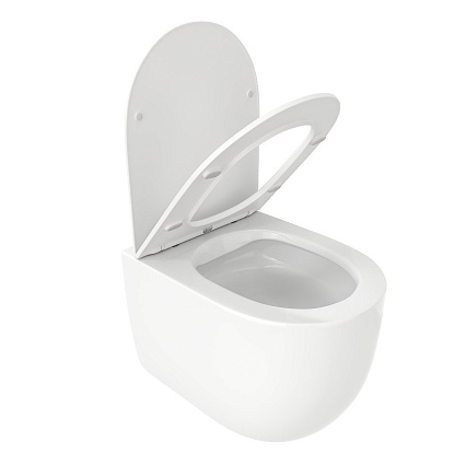 Безободковые модели не имеют мест, где могла бы скапливаться грязь. В связи с этим унитаз дольше остается чистым и меньше требует уборки едкими моющими средствами. В комплекте присутствует легкосъемное сидение с крышкой, оснащенное системой микролифт (для плавного и бесшумного опускания). Крепления к чаше выполнены из стали, а само сидение - из долговечного полимерного материала – дюропласта с антибактериальным покрытием. Снятие осуществляется одним нажатием кнопки. Антивсплеск обеспечивается конструкцией чаши (воронкообразной). Каскадная система слива омывает всю внутреннюю поверхность чаши. Это обеспечивает качественное очищение.