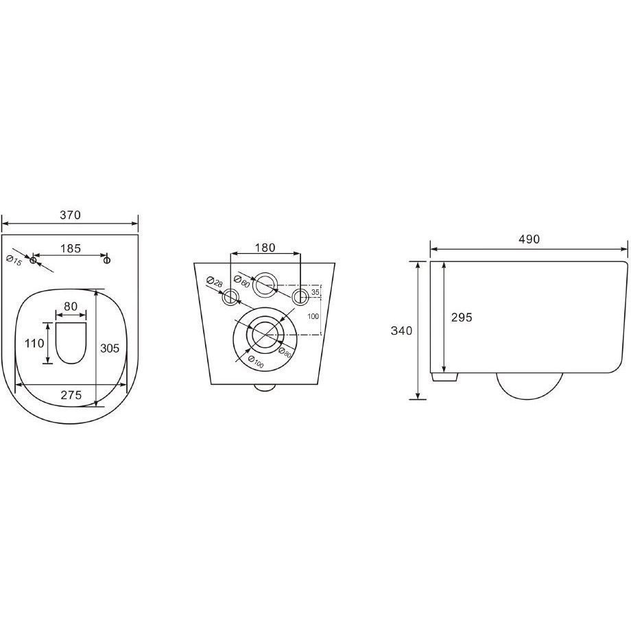 - Чаша унитаза безободковая 490*340*370 мм