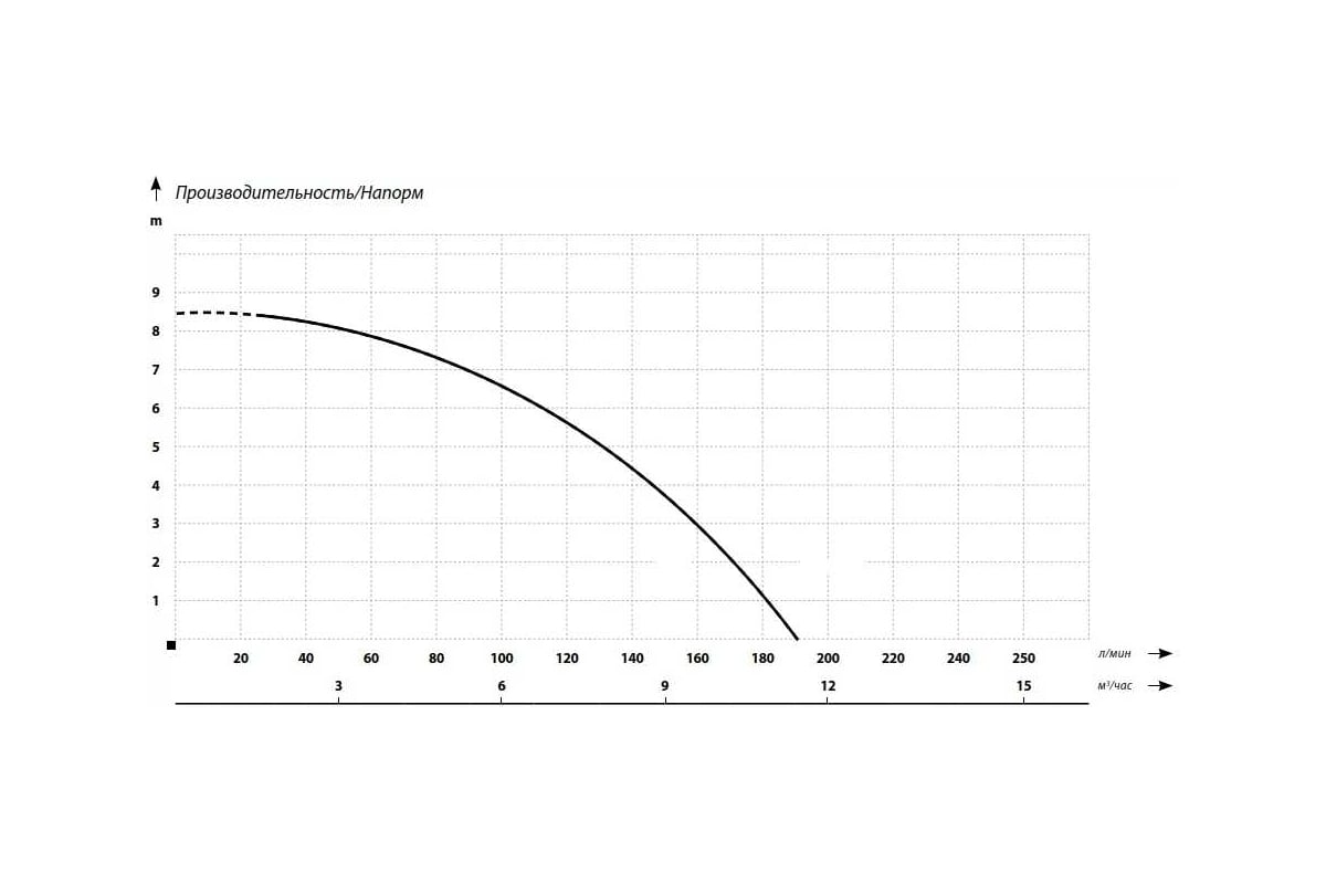 .Насос обладает мощностью 550 Вт и обеспечивает максимальный напор до 8.5 метров, а также максимальный расход до 11 м³/час.