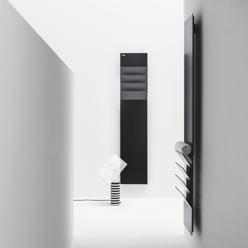 Электрический полотенцесушитель Antrax Flaps B — это тонкий вертикальный радиатор, разработанный Victor Vasilev. Идея этого проекта возникла из наблюдений за формой пластинчатых батарей. Предмет интерьера изготовлен из полностью перерабатываемого алюминия и обеспечивает высокую эффективность обогрева. Уникальной деталью являются створки, которые используются в качестве вешалок для полотенец.