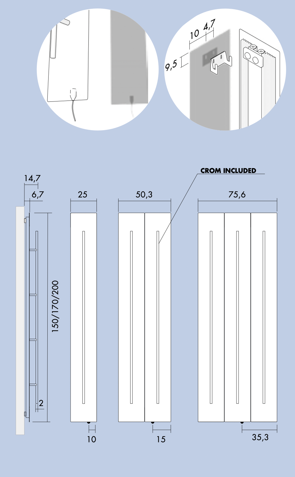 Электрический полотенцесушитель Antrax Teso можно монтировать как горизонтально, так и вертикально. Радиатор состоит из большого 25-сантиметрового модуля, который может быть установлен индивидуально или в виде двух или трёх частей. Его высота варьируется и доступна в размерах 150 см и 170 см.