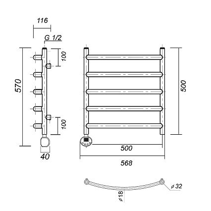 Полотенцесушитель электрический Domoterm Калипсо П5 500x500 EL ТЭН слева, черный матовый