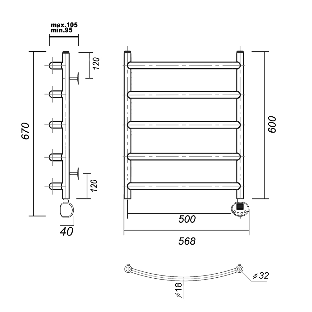 - Электрический полотенцесушитель из пищевой нержавеющей стали.