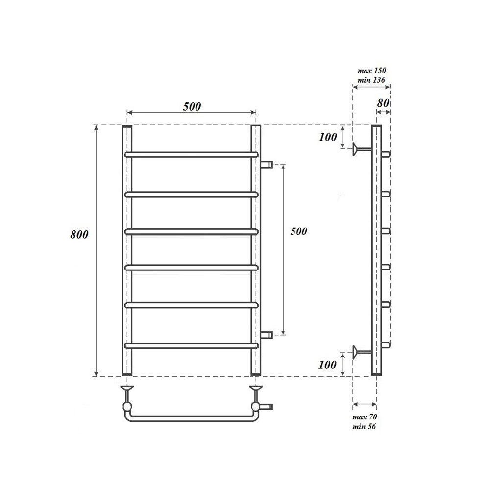 Полотенцесушитель водяной Point PN08558 П6 50x80, боковое подключение, хром