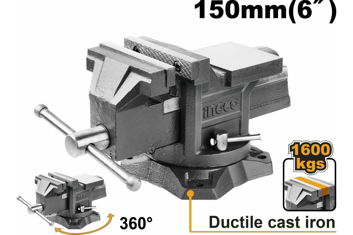 Поворотные тиски с наковальней INGCO 150мм HBV086 подойдут для типовой обработки различных заготовок. Модель имеет высокую прочность и позволяет зажимать детали с большим усилием до 1600 кгс.